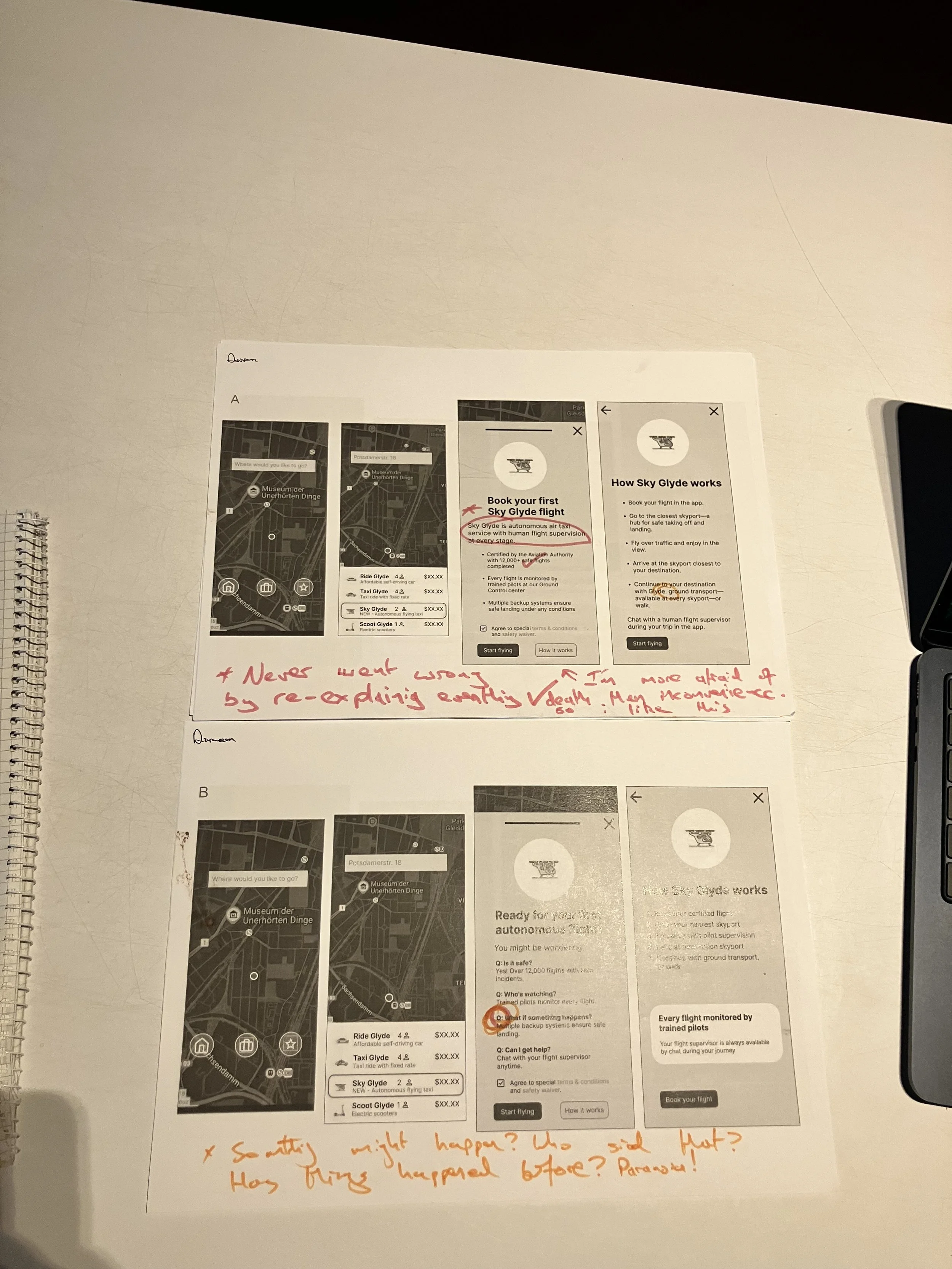 Applied safety-focused messaging from Version B to final prototype to build trust, particularly